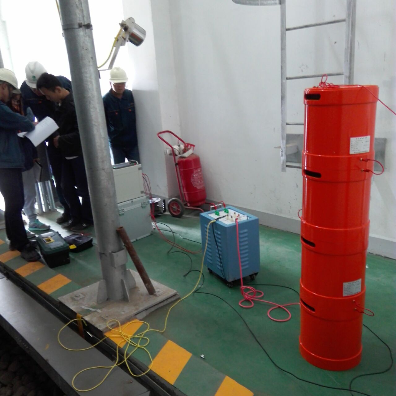 此次培訓的主要設備是我公司的優質產品:YTC850-108/108變頻串聯諧振試驗裝置,該裝置主要針對10kV、35kV電纜, 35kV及以下電壓等級開關、GIS、互感器、斷路器等變電站設備的交流耐壓試驗設計制造。設備所需電源容量大大減小。串聯諧振電源是利用諧振電抗器和被試品電容諧振產生高電壓和大電流的,在整個系統中,電源只需要提供系統中有功消耗的部分。設備的重量和體積大大減少,改善輸出電壓的波形。防止大的短路電流燒傷故障點等優質特點。