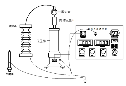 將機箱、倍壓筒放置到合適位置分別聯(lián)接好電源線、電纜線和接地線,保護接地線與工作接地線以及放電棒的接地線均應單獨接到試品的地線上(即一點接地),電源開關放在關斷位置并檢查調(diào)壓電位器應在零位。過電壓保護整定值一般為試驗電壓的1.1倍。順時針方向平緩調(diào)節(jié)調(diào)壓電位器,輸出端即從零開始升壓,升至所需電壓后,按規(guī)定時間記錄電流表讀數(shù),并檢查控制箱及高壓輸出線有無異常現(xiàn)象及聲響。