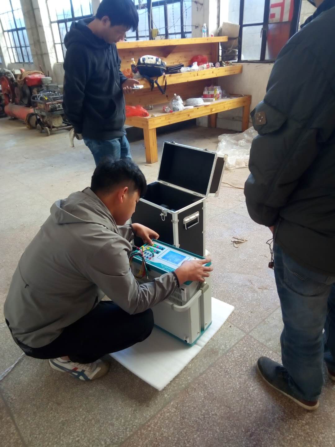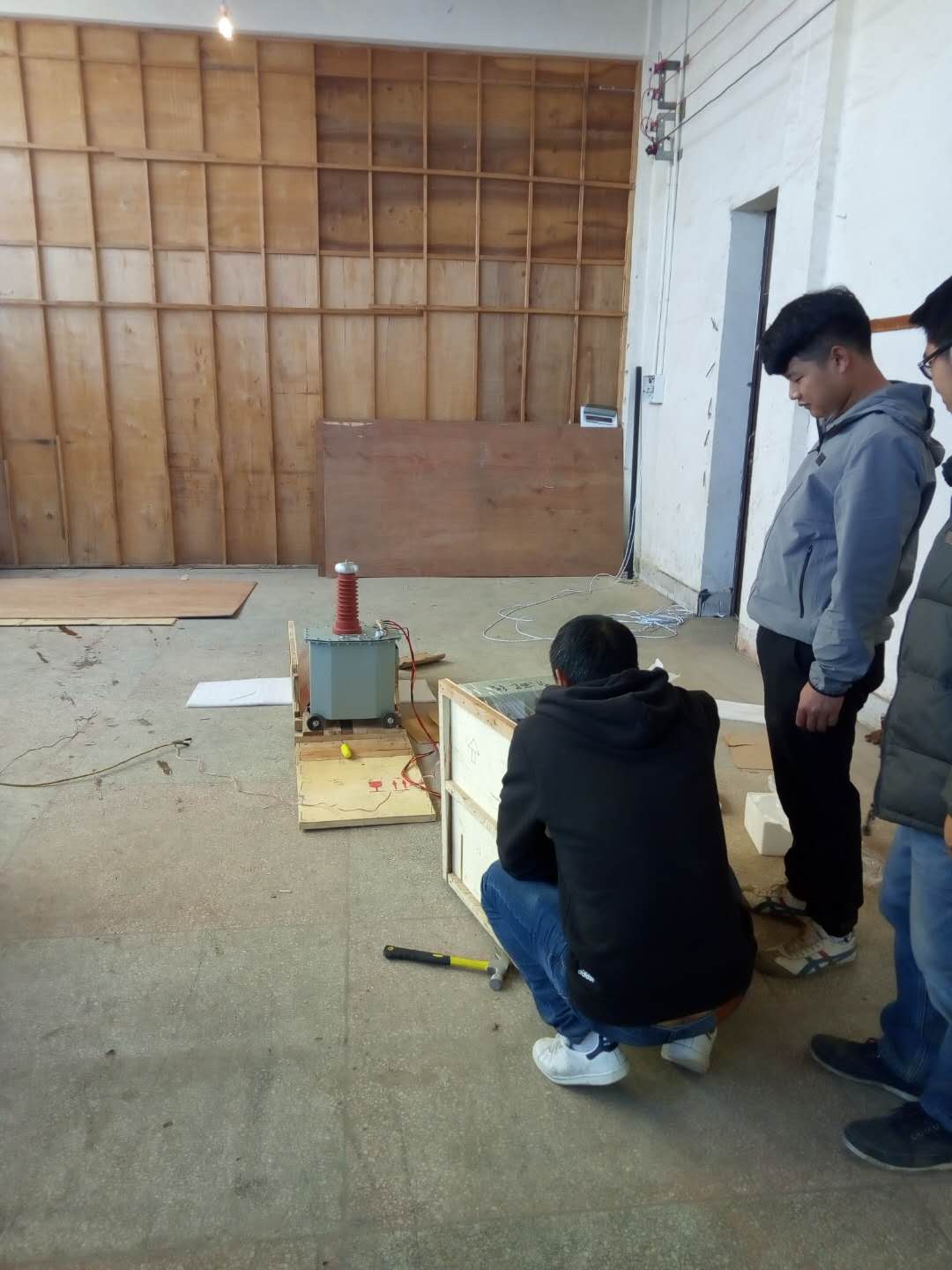 陳工很快抵達現(xiàn)場,與客戶進行面對面的交流,了解客戶的需求和想法。然后開始講解設(shè)備,并認真講解怎樣安全操作設(shè)備。確保客戶明白了安全操作以后,陳工帶領(lǐng)客戶一起做試驗——YD-J-30kVA/50kV工頻交流耐壓試驗裝置的速度測量,行程測量,電流測量等一系列試驗。我公司的設(shè)備比較先進,采用單框芯式鐵芯結(jié)構(gòu)。初級繞組饒在鐵芯上,高壓繞組在外,這種同軸布置減少了漏磁通,因而增大了繞組間的耦合。產(chǎn)品的外殼制成與器芯配合較佳的八角形結(jié)構(gòu),整體外形顯得美觀大方。我公司產(chǎn)品具有體積小、重量輕、結(jié)構(gòu)緊湊、功能齊全、通用性強和使用方便等特點。特別適用于電力系統(tǒng)、工礦企業(yè)、科研部門等對各種高壓電氣設(shè)備、電器元件、絕緣材料進行工頻或直流高壓下的絕緣強度試驗。