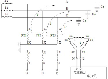 根據(jù)上圖的物理模型就可建立相應的數(shù)學模型,通過檢測測量信號就可以測量出三相對地電容值3C0,再根據(jù)公式I=3ωC0 Uφ(Uφ為被測系統(tǒng)的相電壓)計算出配網(wǎng)系統(tǒng)的電容電流。