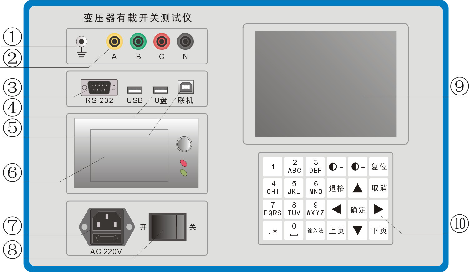 變壓器有載開關測試儀面板介紹以及產品概述