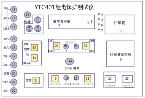 微機(jī)繼電保護(hù)測試儀是專業(yè)用于電力工作中的電力設(shè)備,是繼保工作者的好助手。儀天成電力設(shè)備有限公司的YTC401微機(jī)繼電保護(hù)測試儀正是擁有體積小,重量輕才成為了繼保工作者的首要選擇。YTC401單相繼電保護(hù)測試儀采用單片微機(jī)技術(shù),由自動同期數(shù)字毫秒表,邏輯控制單元,多功能數(shù)顯單元,高精度數(shù)據(jù)采集及處理單元,電流、電壓輸出單元,過載及超量程保護(hù)單元等部分組成,自帶打印及顯示,測試過程全自動,大大提高測量精度及工作效率。本文就YTC401微機(jī)繼電保護(hù)測試儀的面板以及菜單詳情做以下的講解。