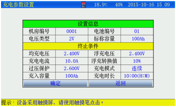 充電時(shí)長(zhǎng):最小1分鐘;最大99小時(shí)59分。設(shè)置完成并確認(rèn)接線正確后,按確定進(jìn)入開始充電。