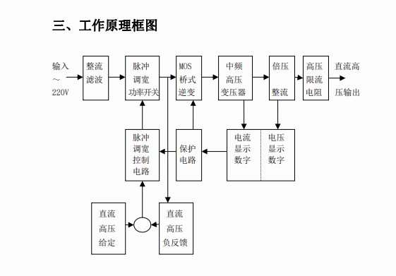 首先,直流高壓發(fā)生器接入 220V 或 380V 的交流電源,交流電源通過電源輸入模塊進入設備內部。接著,交流電流流入整流電路,整流電路一般由整流二極管或整流橋堆構成。以常見的橋式整流電路為例,它利用二極管的單向導電性,在交流電源的正半周和負半周分別讓不同的二極管導通,將正弦交流電轉換為脈動直流電。