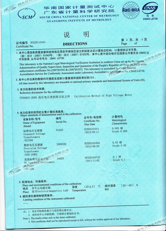 轉載:"YTC8107-100電容分壓器高壓測量系統的資質證書" 請注明來源于儀天成電力。 更多技術問題請致電儀天成電力客戶服務:027-87876585,技術部專線:027-87876585,在線客服:719388481
